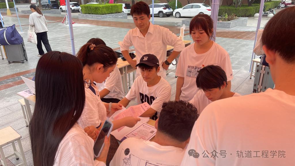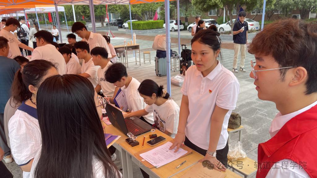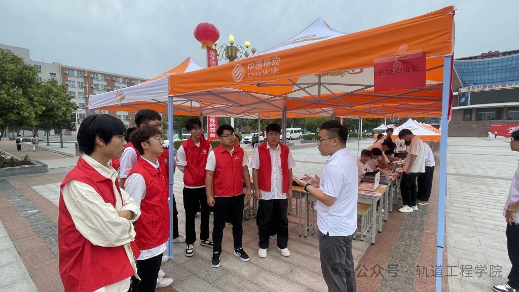 欢迎的标识在微风中轻扬,指引着远方的学子,踏入轨道工程学院的知识殿堂,学长学姐的热情如阳光般灿烂,传递着延续至今的温暖与力量。