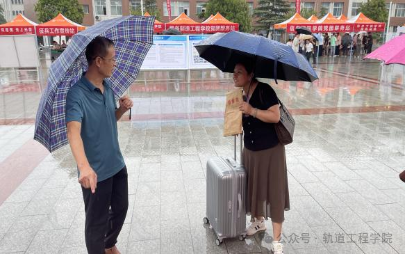 迎新期间,轨道工程学院院长闫富有携学院相关负责人亲临迎新现场,实地考察各环节工作进展状况,与一线工作人员进行亲切交流,详尽了解迎新工作细节,同时针对现场发现的问题及时予以协调解决。闫富有院长以身体力行的实际行动拉近和学生的距离,用无微不至的关怀传递学院温暖,使新生和家长真切感受到学院大家庭的温情与关怀。