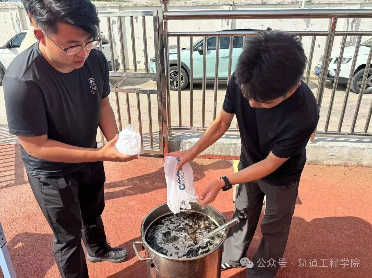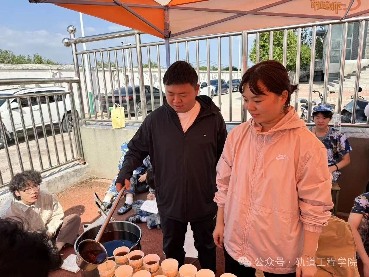 烈日高悬,骄阳如炬,轨道工程学院的新生们在操场上尽情挥洒着青春的汗水,以坚定的步伐、昂扬的姿态镌刻下独属于他们的成长印记。9月9日,轨道工程学院新生辅导员和学院学生会精心准备,以满怀关切之情为新生们送上了清凉消暑的酸梅汤,给25级新生们带来一份甜蜜与清凉。
