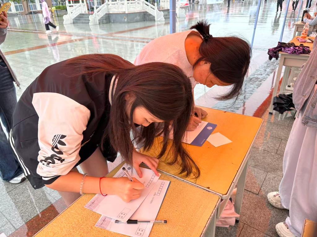 在活动现场,同学们认真思考,写下对三年后自己的毕业寄语。有人写下对未来的期待,有人记录当下的感悟,还有人立下了未来的目标。