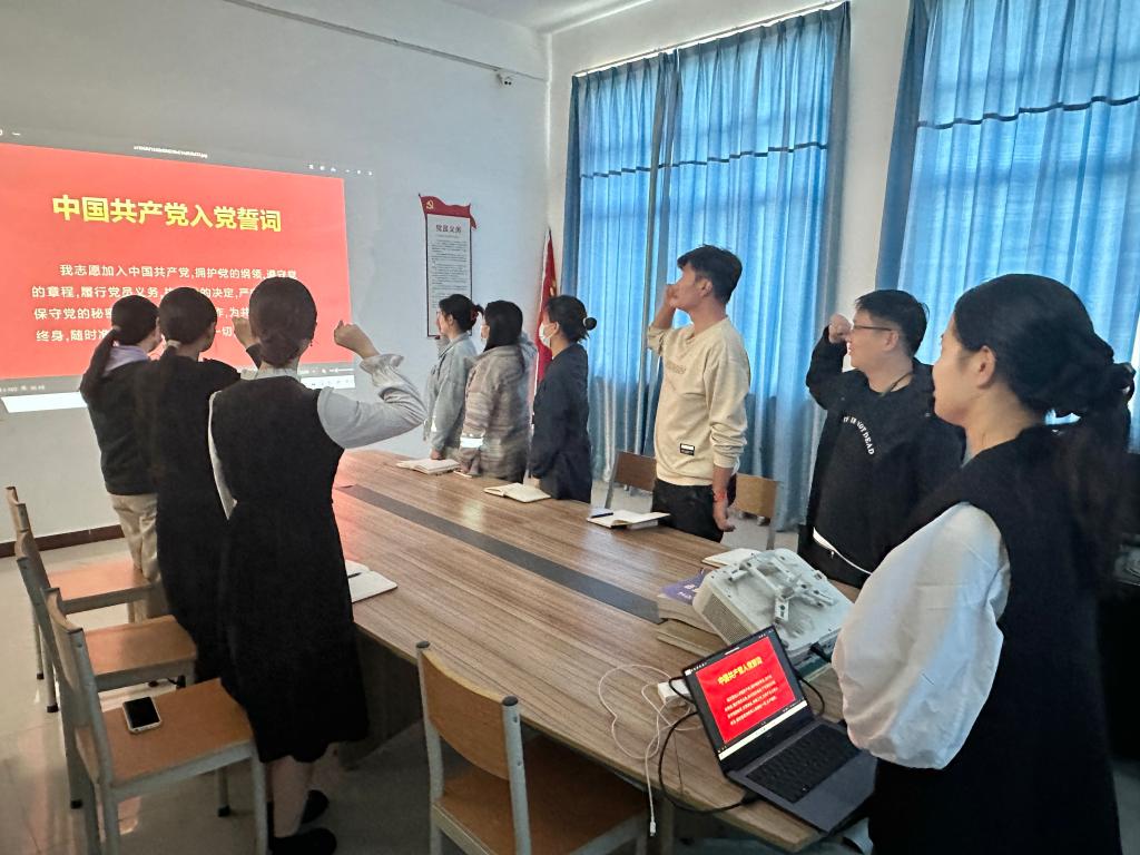 视频观看结束后,在党支部书记的领誓下,全体党员和入党积极分子面向鲜红的党旗,举起右拳,庄严宣读入党誓词。“我志愿加入中国共产党,拥护党的纲领,遵守党的章程……”铿锵有力的誓言回荡在活动室中,不仅是对党员身份的再次确认,更是对践行初心使命、勇担时代重任的郑重承诺。