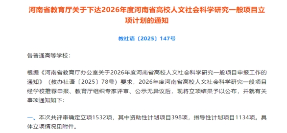 近日,河南省教育厅办公室发布了《河南省教育厅关于2026年度河南省高校人文社会科学研究一般项目立项计划的通知》,8827太阳集团赵丽萍老师主持的研究项目获批资助性立项。